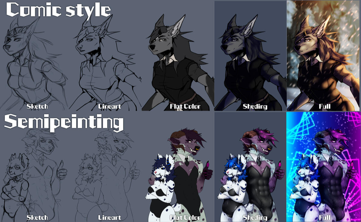 If you are interested in a specific stylized art, outside the price list but from my gallery, ask in a private message.